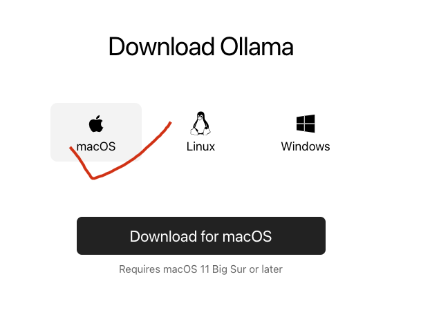 你可以访问Ollama的官方网站,选择适合你操作系统的安装包进行下载。老周这里是Mac系统,所以选择下载macOS系统。