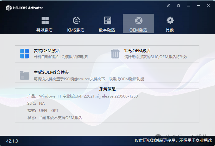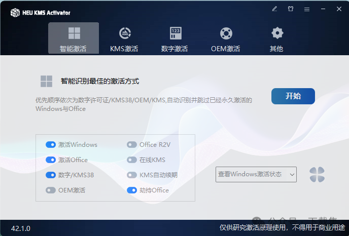 HEU KMS Activator v42.1.0以其强大的功能和便捷的操作,为用户们带来了全新的激活体验。无论是智能激活、数字激活,还是传统的KMS激活和OEM激活,都能满足不同用户的需求。精美的界面设计和对Office 2024的支持,更是让它脱颖而出。如果你在寻找一款高效、稳定的激活工具,不妨试试HEU KMS Activator v42.1.0,它定能为你带来意想不到的惊喜!